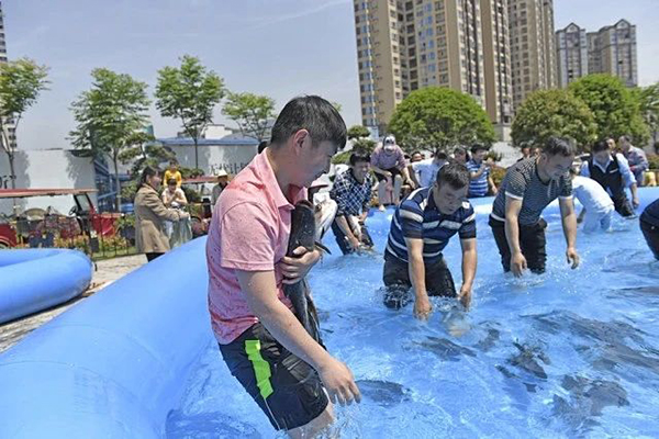 最受親子家庭歡迎的現(xiàn)場(chǎng)捕魚(yú)活動(dòng)壓軸登場(chǎng)!特制的充氣魚(yú)池里魚(yú)兒歡騰,早已按捺不住的孩子們卷起褲腿,拿起小網(wǎng)兜,迫不及待地沖入水中。一時(shí)間水花飛濺,驚呼與歡笑此起彼伏,“抓到啦!”的興奮呼喊不斷響起。孩子們專注的神情、濕漉漉的笑臉,家長(zhǎng)們?cè)诔剡吋佑团恼盏臏剀爱?huà)面,構(gòu)成了夏日夜晚最動(dòng)人的親子圖景。