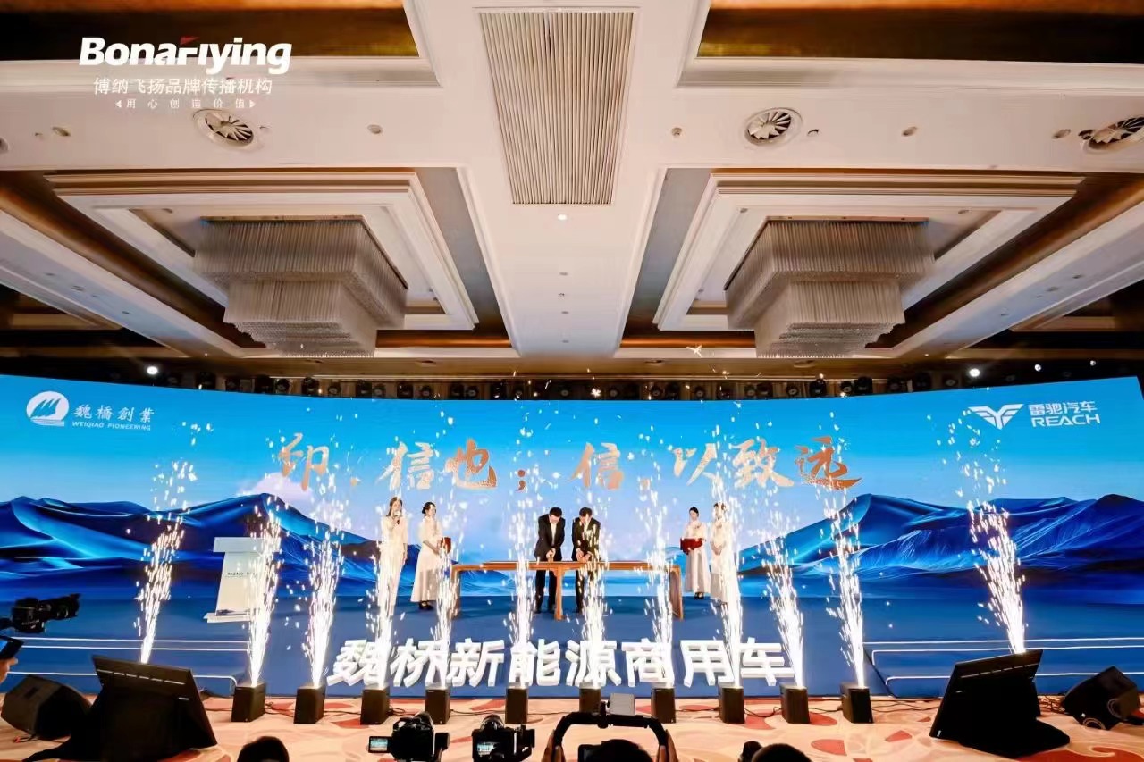 - **全新車型發(fā)布**:雷馳·信V70精彩亮相,這是魏橋新能源商用車推出的行業(yè)首款“鋁VAN”,具備“超輕便、長續(xù)航、高保值、更貼心”的產(chǎn)品優(yōu)勢,此外,純電續(xù)航270公里、貨箱容積高達(dá)7.2方,大空間、裝貨更方便。