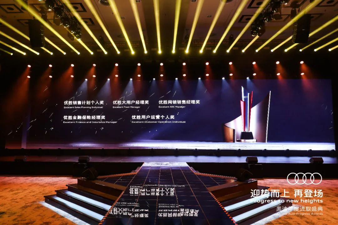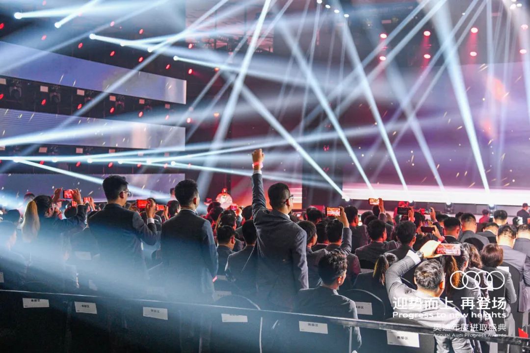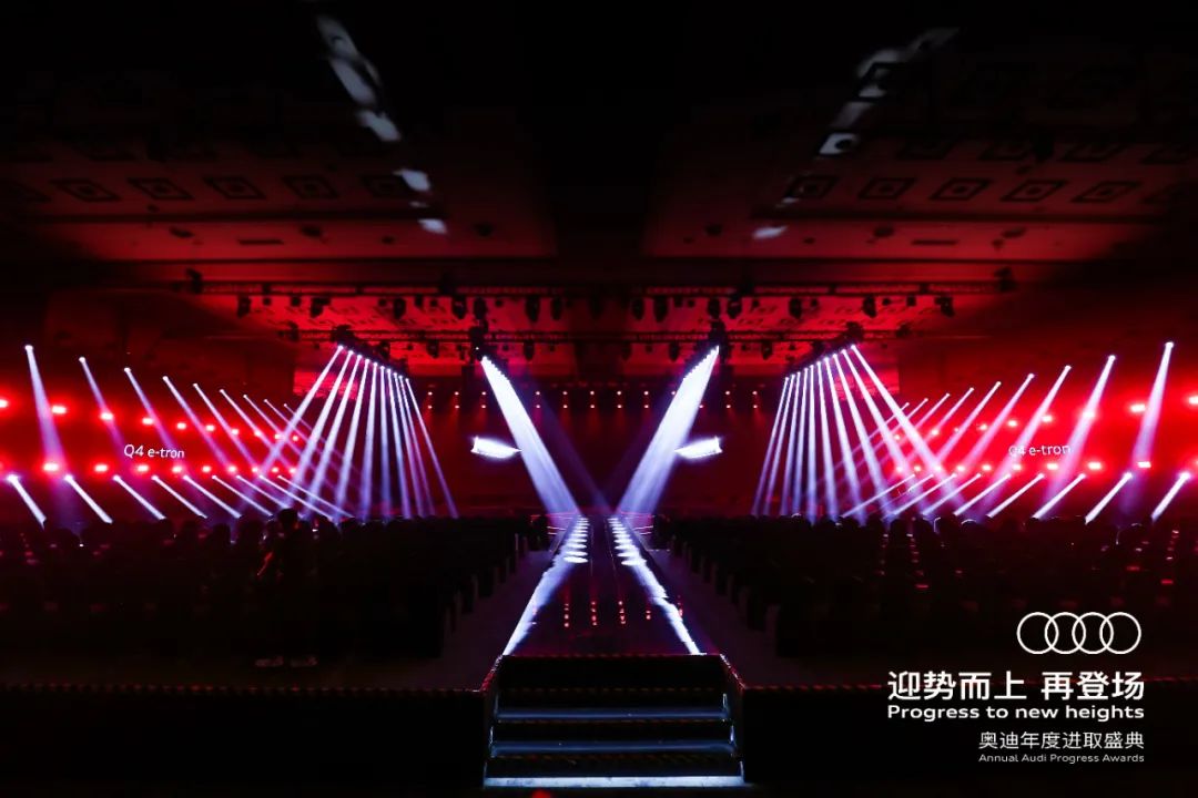 盛典以迎勢而上、進取向上、夢想至上、榮耀登場為故事線,充分展現(xiàn)品牌發(fā)展的輝煌成績,鼓舞全員士氣;青島博納飛揚文化傳播有限公司認為將品牌年輕化、運動化、高端化的形象與奧迪人精益求精的進取精神相融合,傳遞品牌馭領電動化轉型浪潮的決心與信心。
